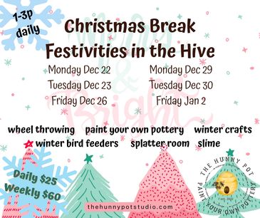 For Pottery Painting, we are an open house style, gladly accepting walk-ins.