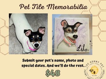 Honor your beloved pet with a hand-painted ceramic tile, personalized with their name, photo, and special dates. A beautiful keepsake to cherish forever!