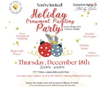The Council on Aging and Hunny Pot Pottery Studio are teaming up to host a festive Holiday Ornament Painting Party—and you’re invited!